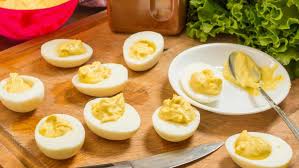 Etaler une petite couche de Mayonnaise sur chaque 1/2 oeuf farci.