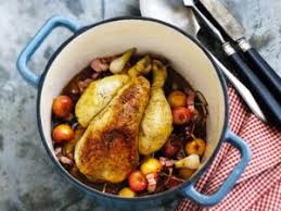 Dans une cocotte sur feu moyen, faire dorer légèrement lardons + oignons + carottes ( 12 mn) en remuant souvent ….. Les sortir à l’écumoire .. .
