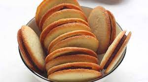 Monter en neige ferme blancs d’oeufs + sel ………. puis peu à peu poudre d’amandes + sucre + farine en veillant à ce que les blancs ne retombent pas.