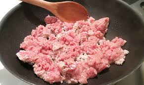 Dans un wok ou une poêle sur feu vif, chauffer l’huile et en enrober le récipient en le faisant tourner……… Mettre viande hachée + ail + piment et faire sauter en mélangeant pour émietter la viande environ 3 mn.