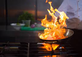 Dans la poêle des pommes ou bien dans une petite casserole sur feu vif, chauffer 10 cl de Calvados ……….. Flamber et apporter rapidement la casserole où le Calvados flambe , devant les convives … Arroser les pain perdus de chacun avec de l’alcool en flammes.