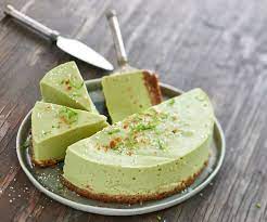 Juste avant de servir, peler le dernier avocat + les kiwis. Retirer le noyau de l’avocat. Détailler les fruits en lamelles pour en décorer le gâteau.