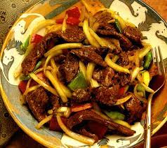Cuisson: – Dans un wok ou une poêle sur feu vif, chauffer le reste d’huile de sésame ( 2 cuillères à soupe) …….. Y faire sauter 1 mn oignon + ail …..