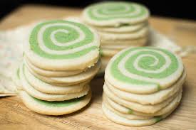 Sortir le roulé du frigo. Y découper des tranches d’1/2 cm ( 5 mm) d’épaisseur ….. et les disposer au fur et à mesure, un peu espacées, sur la plaque du four.