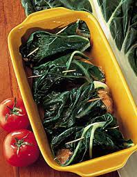 Rouler les 2 tranches ensemble ( foie + lard fumé) sur elles-mêmes ……. Les envelopper dans 1 feuille de blette que vous roulez serrée….. Recommencer pour obtenir 8 paupiettes … .
