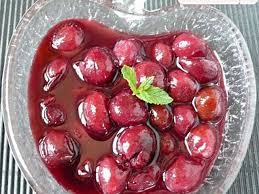 Dans une casserole, porter doucement à ébullition cerises + gelée de groseilles + Porto + zeste d’orange…….. Laisser frémir 5 mn à couvert … puis ôter du feu.