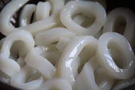 Rincer et sécher les poches de calamars .. Les détailler en anneaux.