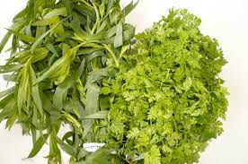 Hacher persil + cerfeuil + les feuilles d’estragon … . Les ajouter à la mie de pain + 50 g de beurre mou + sel + poivre. Bien mélanger … .