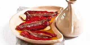Pour servir, disposer les filets d’anchois sur les poivrons.