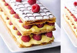 (Poudrer de sucre glace) — S’il vous reste des framboises, en parsemer le mille-feuille.