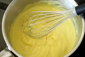 Réaliser la crème pâtissière: – Faire bouillir le lait + la gousse de vanille fendue ou le sucre vanillé.