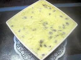 Dans une casserole, porter le lait à ébullition + 50 g ( 2 cuillères à soupe) de sucre + la gousse de vanille fendue en 2 …….. Y verser la semoule tout en touillant rapidement …………….. puis laisser cuire le temps indiqué sur le paquet en remuant de temps en temps……….. Oter du feu et lui incorporer le reste de beurre ( 80 g environ)…………. Egoutter les raisins et les incorporer. Bien mélanger.