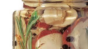 Placer la moitié des champignons dans le bocal …. Ajouter 1 gousse d’ail + 1 échalote + qq grains de poivre + la branche d’estragon……………….. Disposer le reste des cèpes + 1 gousse d’ail + 1 échalote + le reste de grains de poivre.