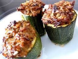 Couper les courgettes en tronçons de 5 cm …. Les évider avec une petite cuillère….. Les plonger 1 mn dans l’eau bouillante … Les égoutter.