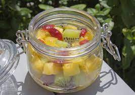 1 grosse boîte de macédoine de fruits ( ou faire une salade de fruits frais coupés en dés: bananes + kiwis + pommes + oranges + raisins secs gonflés dans l’alcool, etc …..)
