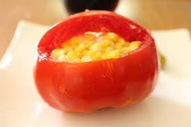 Ajouter dans la poêle les dés de poulet & leur marinade + tomates + maïs + 10 cl ( 1/2 verre) d’eau + sel + poivre. Mélanger. Laisser doucement mijoter 10 mn …. .