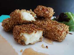 Rouler les bâtonnets de Feta successivement dans farine …. oeufs battus …. puis sésame en appuyant bien pour qu’il adhère … .