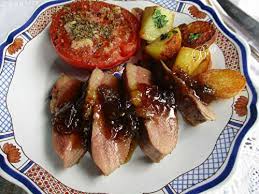 5 mn avant la fin de cuisson du canard, dans une petite casserole, faire un caramel sur feu assez fort avec le sucre + 1 cuillère à soupe d’eau ……….. Oter du feu et verser le vinaigre tout en touillant vivement ( éloignez un peu la casserole de vous car cela va crépiter !!) ………… Verser sur le canard.