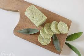 Dans un saladier, travailler le beurre en pommade tout en incorporant peu à peu la sauge ( 5 mn) …. + l’ail ……… .