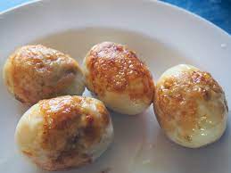 Dans une poêle ou un wok sur feu moyen, chauffer 2 cuillères à soupe d’huile. Y faire dorer les oeufs ( 7 à 10 mn ) jusqu’à ce qu’ils soient brun doré et boursouflés ……. Les sortir de la poêle.