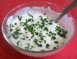Dans un bol, fouetter crème fraîche + ail + ciboulette + sel + poivre …. Verser cette sauce dans le saladier et bien mélanger mais délicatement … .