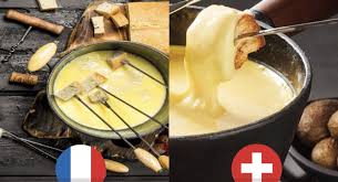 Mettre le caquelon sur le feu avec vin blanc + muscade + sel + poivre. Porter à ébullition …………. puis ajouter les dés de fromage et touiller sans cesse jusqu’à ce que les fromages soient fondus et la sauce bien liée …. .