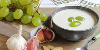 Dans un mortier, piler amandes + ail pour obtenir une purée ………… Ajouter la mie de pain bien essorée entre vos mains. Mélanger ……. Verser peu à peu l’huile d’olive en tournant vivement, régulièrement et toujours dans le même sens comme vous le feriez pour monter une mayonnaise ………………