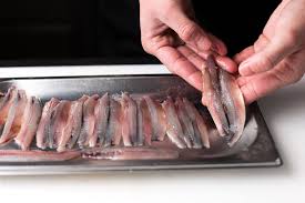 Etêter et désarêter les anchois frais. Les rincer et les mettre bien à plat …. .