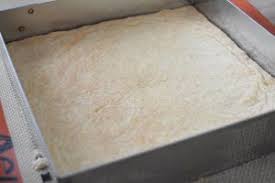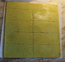 Disposer la pâte dans le moule ou sur la plaque …………. Découper en carrés de 3 à 4 cm de côté ………