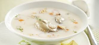 Au fouet et vivement, incorporer les jaunes d’oeufs dans la soupe + le beurre coupé en noisettes ( toujours sur feu doux !) ………. quand le beurre a fondu et que le tout est bien chaud, verser sur les huîtres.