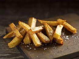 Peler les pommes de terre … Les tailler en frites pas trop fines … Les essuyer avec du papier absorbant.