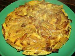 Verser les oeufs battus dans la poêle + les frites après avoir baissé sur feu moyen.