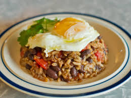 (accompagnement: tasses de café + avocats + oeufs brouillés, mollets ou sur le plat + rondelles de bananes plantain grillées + tortillas + un bol de sour cream = crème aigre ou bien de la crème fraîche additionnée de jus de citron ……)