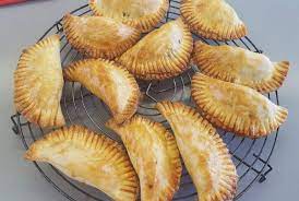 Disposer 1 cuillère à café de préparation au milieu de chaque petit disque…… Refermer en 2 pour former un chausson. Ecraser le bord refermé à la fourchette en appuyant bien pour empêcher la préparation de s’échapper à la cuisson…. . ( il est possible aussi de les plier en ramenant les bords vers le centre comme des Dimsum cantonais).