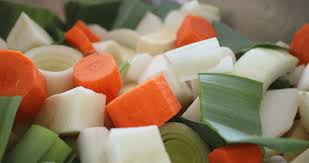 Dans le faitout, déposer en couches successives les 1/2 pieds de porc + les légumes….. Ajouter le bouquet garni + les grains de poivre + le vinaigre.