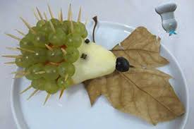 Entourer les poires de grains de raisins + un cordon de crème aux noix.