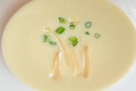 Réduire les salsifis en purée au mixer. Ajouter la Béchamel + 50 cl ( 1/2 litre) de jus de cuisson des salsifis .. Bien mélanger puis passer le tout au chinois( = dans une passoire fine)……………… Ajouter les Perles du Japon égouttées … Oter du feu.