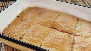 Déposer 6 feuilles de filo en les beurrant chacune à l’aide d’un pinceau… . Recouvrir de la moitié de la farce au fromage …… Couvrir de 6 feuilles de filo en les recouvrant chacune de beurre fondu ……… Tartiner du reste de farce …………. Terminer par 6 feuilles de filo, chacune beurrée…….. .