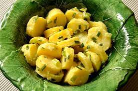 Laver les pommes de terre. Ne pas les peler. Les faire cuire 30 mn dans de l’eau bouillante salée.