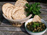 ……. 10 mn avant de servir, casser les galettes en gros morceaux. Les poser sur le plat et les enfoncer un peu. Oter du feu. Parsemer de persil + menthe + coriandre. Mélanger rapidement. Couvrir 5 mn et servir bien chaud.
