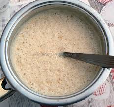 Dans un saladier, battre les oeufs en omelette + le sucre …….. Verser peu à peu le lait bouillant en touillant vivement … .