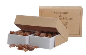 Sortir le moule. Battre la glace en arrosant peu à peu d’alcool de poire ……. puis, délicatement, à la spatule, incorporer les brisures de marrons glacés sans les réduire en purée …