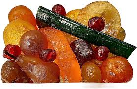Détailler en petits dés les fruits confits. Poudrer de 2 ou 3 cuillères à soupe de farine et bien mélanger: cela empêchera les fruits confits de tous tomber au fond du gâteau.