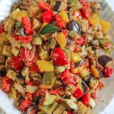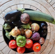 Disposer en couches successives les légumes en intercalant chaque couche avec un peu du contenu du bol ( persil + ail + basilic ): la moitié des oignons, un peu d’ail persil … + la moitié des aubergines et un peu d’ail persil … + la moitié des courgettes et un peu d’ail persil …. la moitié des poivrons et un peu d’ail persil ….. la moitié des tomates + un peu d’ail persil … et recommencer avec le reste des oignons et un peu d’ail persil … aubergines etc …..jusqu’à épuisement des ingrédients.