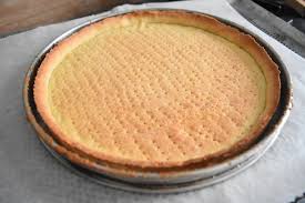 Cuisson de la tarte: – Sortir la crème du frigo. La couler sur le fond de tarte.
