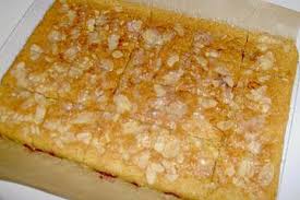 Dès la sortie du four, découper des petits rectangles dans le gâteau encore chaud….