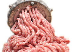 Au mixer, hacher finement jusqu’à les réduire en purée fine, en crème, porc + boeuf + lard.