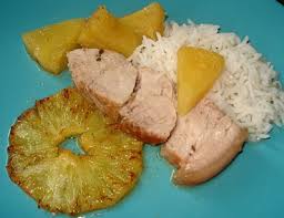 Etaler les tranches d’ananas entières ou coupées en 2 sur le gigot……. Rouler la viande pour envelopper l’ananas. Ficeler en rôti.