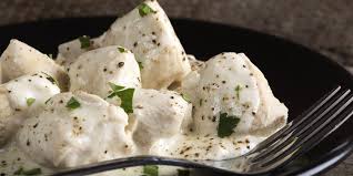 Le poulet étant cuit, verser la sauce yaourt par dessus. Mélanger 1 à 2 mn sur feu doux et servir.