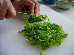 Pendant ce temps: – Laver et sécher les feuilles de laitue. Les tailler en chiffonnade.